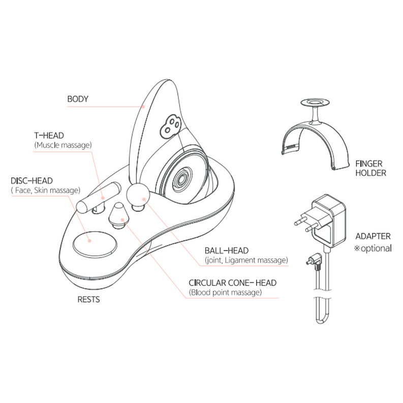 ○Neck Massage using T-Head and Circular Cone-Head: Can reduce and prevent neck lines and promote the skin elasticity